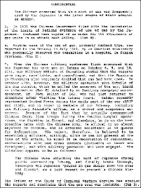 报告对日军于1941年10月在宜昌使用毒化武器作了较详细的陈述。在这篇报告的首页,米勒准将开门见山地写道:“自1937年秋天以来就不断有关于日军在中国使用毒化武器的报告。毫无疑问日军使用了毒化武器,无论是用来试验,还是在地面部队遇到极大危险的紧急情况下。美军情报部门确信,在未来日军将在他们认为有必要或者有利的情况下,随时随地使用毒化武器”。