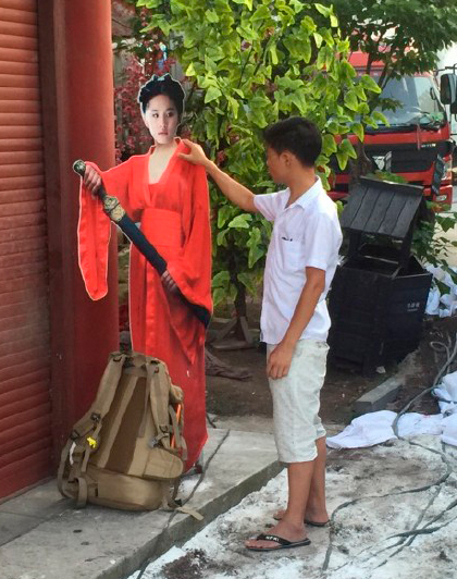 照片中,一名穿着白色短袖的男子把手放在刘亦菲的人形牌,十分专注地盯着她,场面颇为搞笑。黄晓明更透露该男子已经默默地看了“刘亦菲”半小时了。