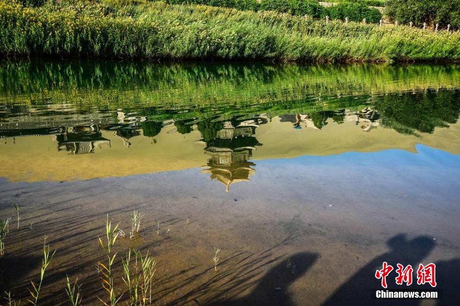 记者梳理发现,月牙泉连续下降多年的水位,在近年逐渐恢复并保持在1.5米左右,而且时?;岢鱿秩险且绯鑫Ю傅木跋?。图为敦煌月牙泉美丽的倒影。 王斌银 摄