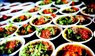 富顺豆花是首批四川省非物质文化遗产,它以豆花为主,并辅以蘸水和米饭。它在制作材料上的与众不同是,基础材料卤水来自盐井。相传豆腐传入自贡地区的富顺县后,就成为盐工饮食必不可少的部分。由于上工时间紧,盐工们有时等不及豆腐成型便将凝结成雪花状半成品豆腐和着辣椒水下饭,结果发现更具风味,鲜嫩可口。发展到现在的富顺豆花,特点是绵而不老、嫩而不溏、洁白如雪。另外,除老三样以外,现今搭配的“窖水”也具清热祛毒、醒酒解腻、回甜止渴的功效。