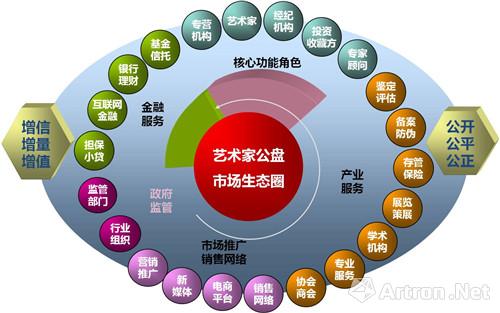 其实他要建立的是资源整合型市场体系,专营机构为投资主体,经纪机构执行项目运作,保真数据库为基础保障,结合仓储、物流、保险等等,将与之相关的各个行业都打通,形成一个公开透明的开放性平台,开辟一个新市场,这是一个细分的市场,并不会改变原有的藏家市场,艺术家公盘打造一个介于艺术与金融之间的平台,让两边融合。