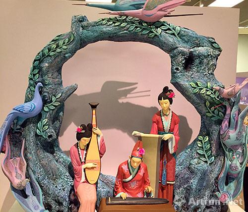 “泥人张的传承需要当随时代,这样的艺术才有生命活力。由于时间在变化,当代泥人张的题材也在不断拓宽,不仅仅是反映传统题材,还要反映现实题材。”张锠告诉雅昌艺术网。比如近年创作的《丝绸之路》,就是一组反映现实题材的作品。“在已有的构思基础上,又经过新的设计。采取组雕三段式构图,分出、进与中心的交换三部分。作品运用夸张概括的造型和装饰性的色彩语言,生动地表现出丝路交流与沟通的文化内涵。造型高低、疏密富于变化;色彩在冷暖、纯度、明度、补色对比中求丰富。”