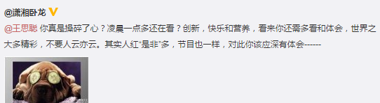 原标题:湖南卫视回应王思聪质疑:似曾相识,千古不变