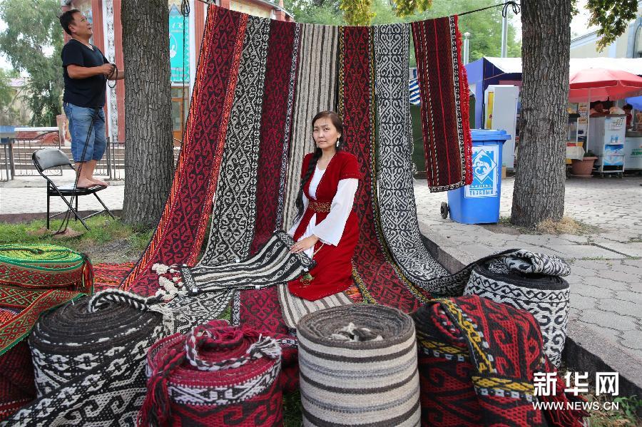 这是7月31日在吉尔吉斯斯坦首都比什凯克拍摄的参展手工艺品。