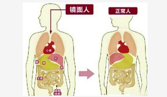 “镜面人比较罕见,发生率大约为百万分之一。”即心脏、肝脏、脾脏、胆等器官的位置与正常人相反,“比如正常人的心脏、脾脏在左边,镜面人则在右边,而正常人的肝、胆、阑尾长在右边,镜面人则在左边。就好像正常脏器的镜中像。”