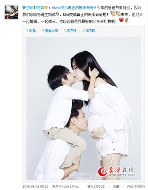 林志颖发出微博,表示Kimi即将当哥哥了。