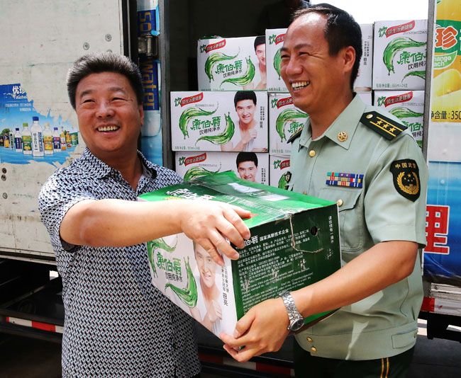 7月30日,“八一”建军节前夕,在中国人民抗日战争暨世界反法西斯战争胜利70周年之际,在民建市委副主委、全国拥军模范石守岭的带领下,民建秦皇岛市委综合三、综合一支部与龙腾长途客运集团公司联合来到秦皇岛市武警支队进行慰问,并送上价值六万元的矿泉水等消暑用品,向全体武警官兵致以节日的祝贺和诚挚的问候。