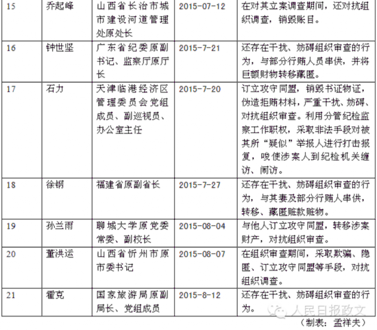 关键词:中纪委 通报21名 对抗组织调查干部
