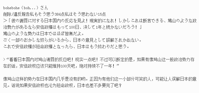 日本原首相鸠山由纪夫访韩期间对当年的对韩殖民统治下跪致歉,被日文雅虎推至头版,引爆日本网民满屏评论,但几乎没有一条是赞成态度,基本上全部是不惮以最肮脏的语言来谩骂鸠山。勃兰特当年一跪受到万人敬仰,鸠山如今一跪竟在日本国内成为千夫所指。战后70年,仍是如此一边倒的民意,着实可怕。下面是小编的截图: