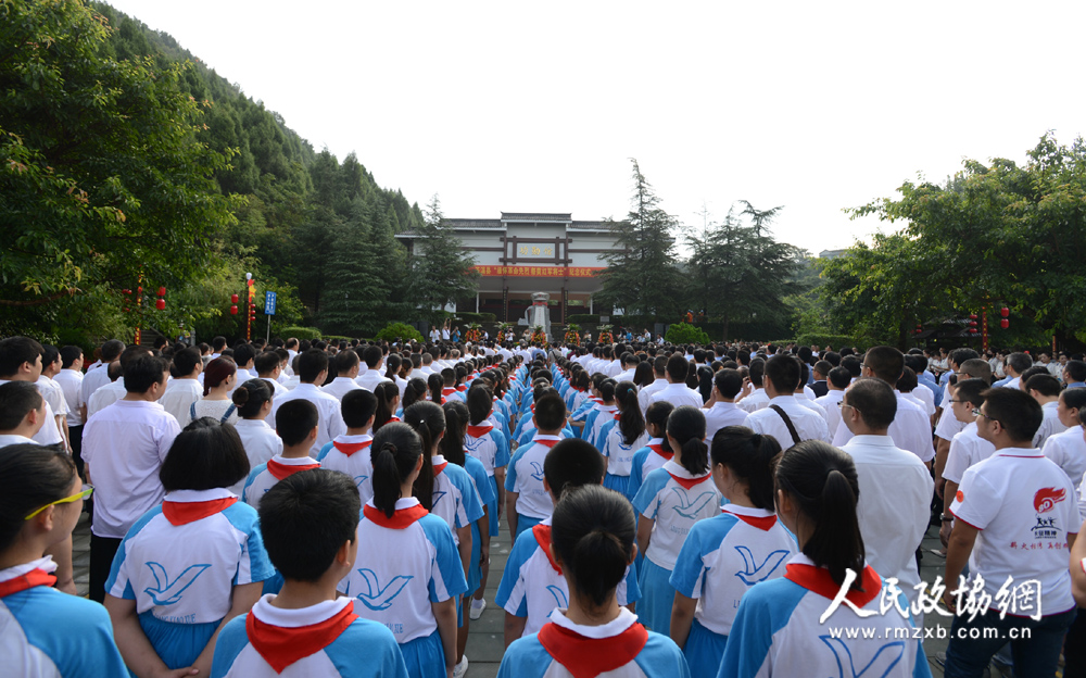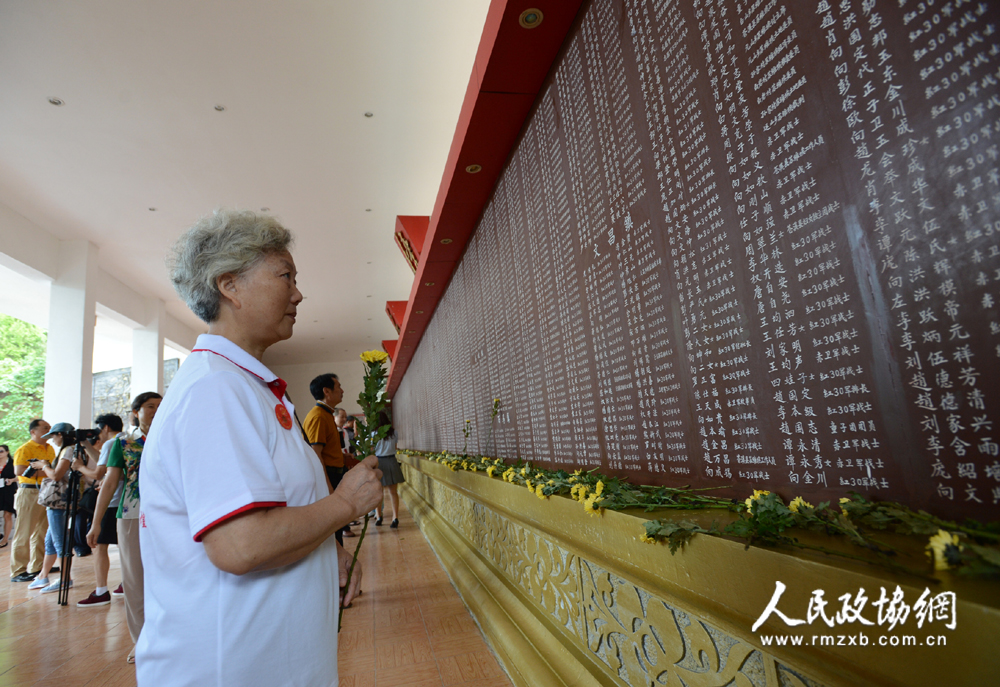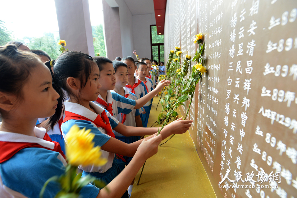 火种采集仪式前,在红军渡功勋馆举行“缅怀革命先烈,祭奠红军将士”纪念活动。 人民政协网记者 齐波/摄