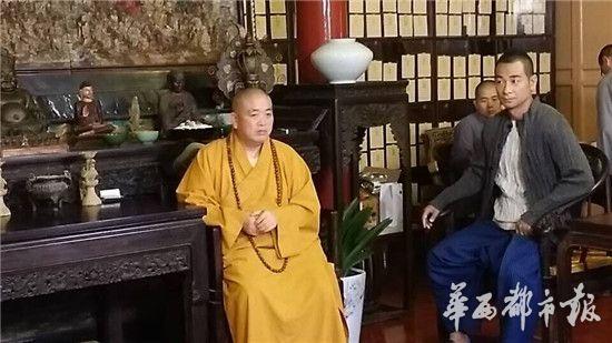 80分钟的发市会隆重简朴。发布会结束,华西都市报记者在释永信的弟子、著名导演傅华阳的安排下,随河南卫视《少林英雄》栏目组以及赵文卓、于荣光、倪虹洁等明星,一起参加了《少年英雄》总策划傅华阳在少林寺后院的“方丈室”里举办的“剧组和释永信恳谈会”。
