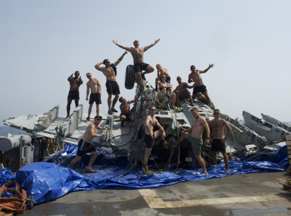 7月22日,阿拉伯海,美国海军打捞特遣队成功打捞起一架坠毁的F/A-18舰载战斗机残骸。该机属于“罗斯福”号航母VFA-211中队,于今年3月10日坠毁,飞行员获救。
