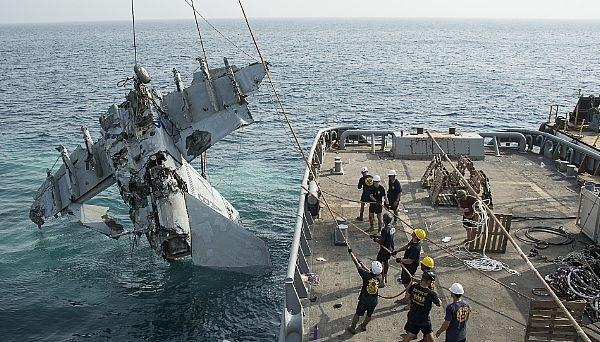 7月22日,阿拉伯海,美国海军打捞特遣队成功打捞起一架坠毁的F/A-18舰载战斗机残骸。该机属于“罗斯福”号航母VFA-211中队,于今年3月10日坠毁,飞行员获救。