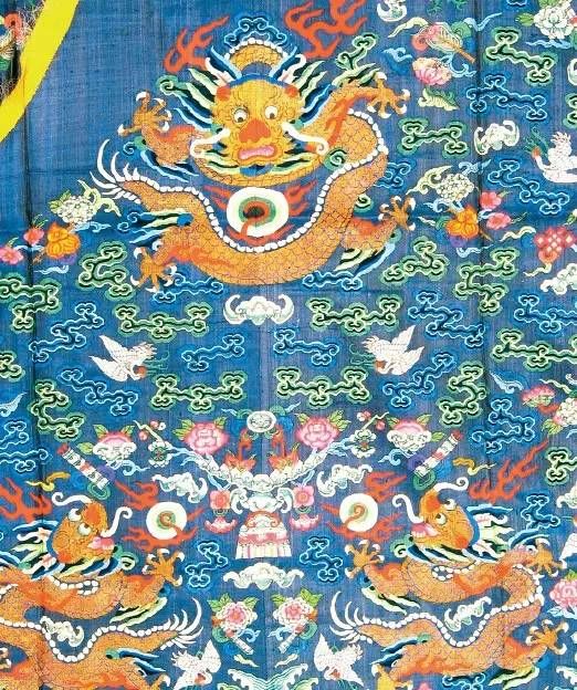 清朝是中国最后一个封建王朝。它崛起于东北地区的白山黑水,其建国初期,从女真族传统文化和中原汉族文化中接纳了龙的形象,将龙的造型广泛应用于宫廷之中。同样,龙纹在清初即成为汗王、福晋(后妃)和皇室成员的专用图案,大量使用于他们的服饰之上,清宫帝王服饰上出现越来越多、越来越程式化的龙纹。