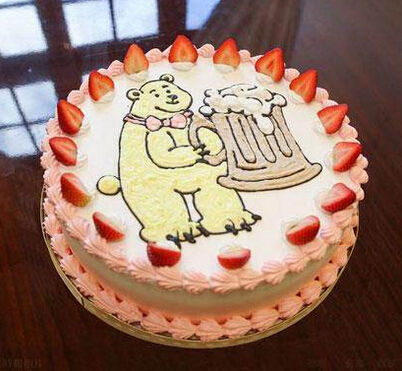 马英九为了庆祝与夫人周美青结婚38周年,特地订了一个金熊蛋糕来庆祝