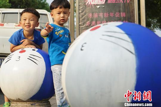 “蓝胖子”萌萌哒现身南京街头。 王瑞 摄