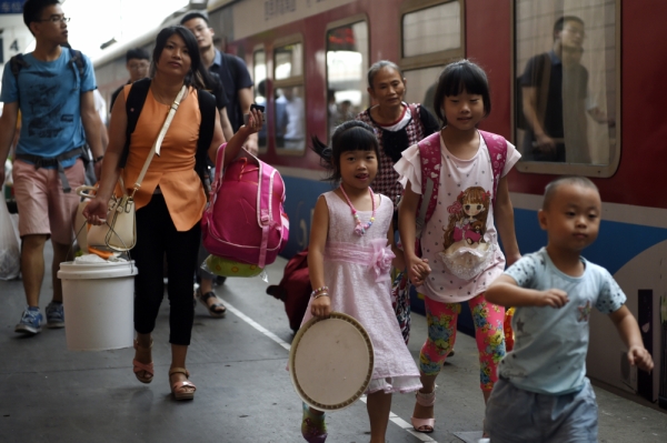 8月28日,在杭州火车站,从杭州开往成都的K529次列车,许多“小候鸟”开始踏上返乡旅程。新华社记者 鞠焕宗 摄