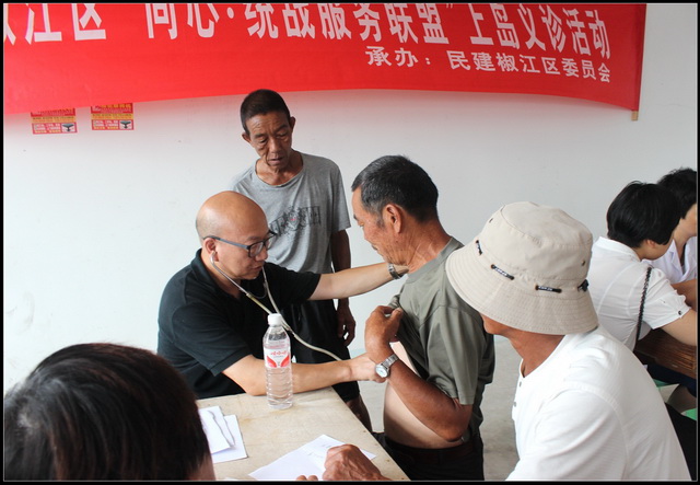 两个小时后,轮船??吭诖蟪碌旱?ldquo;上大陈”码头,民建会员服务队员们一下码头,就被码头上的好些海岛渔民认出来了:“那个光头医生又来给我们看病了!”,会员服务队员们克服晕船反应,迅速赶到南岙村的村部活动室,而获知消息的海岛居民已经早早在那里等候了,当医生们一落座,立马又就被围成里三层外三层,这已是椒江民建到缺医少药的“上大陈”岛义诊活动中常见的景象了。