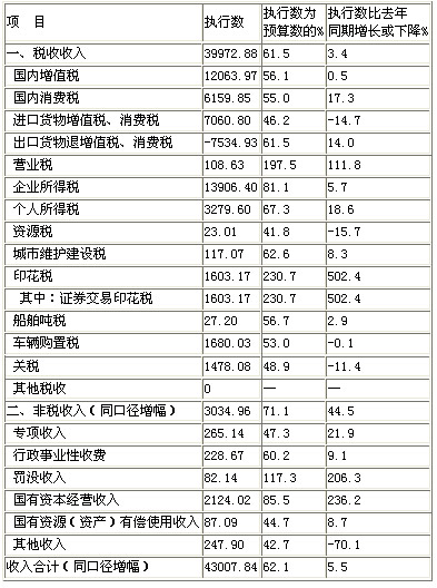 附表3:2015年1—7月中央一般公共预算收入执行情况