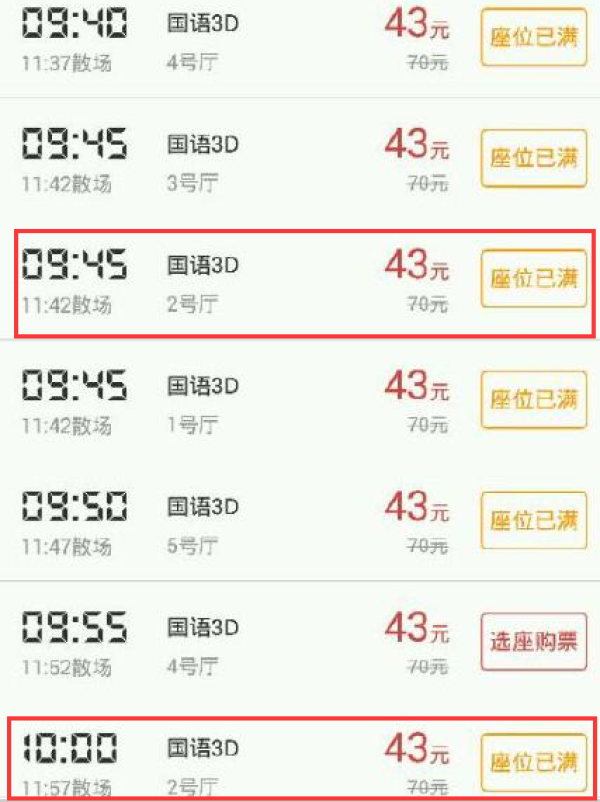 时长120分钟的电影竟在能同一个厅每隔15分钟就能放一场,上座率也均是100%