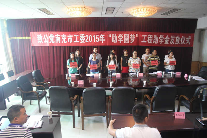 在桂子香时,槐花黄后,梦想起航的时节,致公党四川省南充市工委于8月26日携手南充市嘉陵区政府相关部门,针对品学兼优、家庭条件困难的6位学生,发放助学金12000元。致公党南充市工委副主委、嘉陵区政府副区长黎萍代表致公党南充市工委讲话,她勉励孩子们:你们都是从边远地区出来的好孩子,能够在很艰苦的环境中取得优异的成绩,我们感到很欣慰。贫困锻炼了你们的意志力培养了你们不怕苦不怕累的奋斗拼搏精神。要坚信,努力学习方能成就梦想;要牢记自己是国家社会的一份子,争取学业有成回报社会;要感恩,感谢养育你们的父母,感谢关心帮助你们的人。