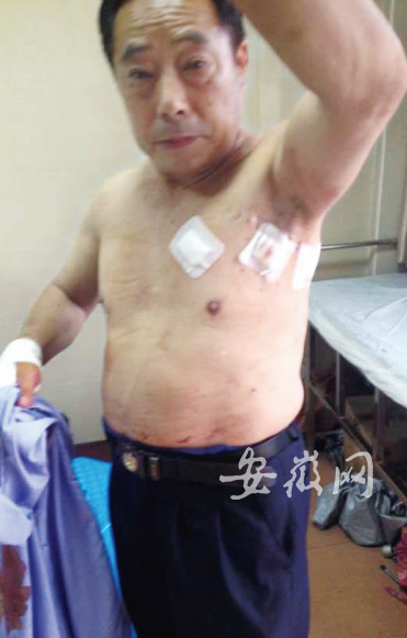 新安晚报 安徽网讯“您是好样的!”昨天傍晚,六安警方带当地人老陈去做伤情鉴定时说。老陈的手部、胸前、腋下和后背多处受伤,最深的伤口有两厘米。