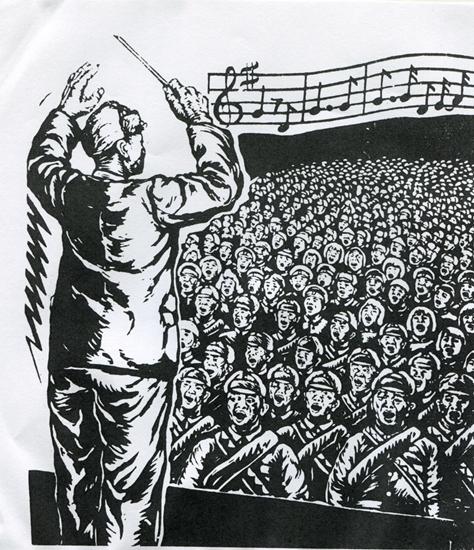 国防前线的歌声(木刻版画) 1936年 陈烟桥