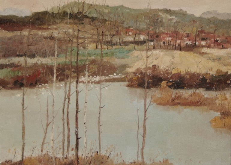 而在中国油画家们执着追求探索的过程中,当代中国油画不断地焕发出新的生机和活力。有意思的是,在近些年的艺术探索中,中国油画家们似乎是不约而同地把目光转向了中国传统的思想、文化与艺术资源中,而不再像此前的对西方资源的推崇与深究。这可能不仅是由于西方当代艺术的侵袭逼仄,也由于文化多元化观念的开放带来对中国传统文化的重新审视而发现其新的价值。在一定的意义上,这是中国油画家民族文化意识的自觉。然而,对中国传统文化精神与品格的回顾和品味,并不是要回到中国传统文人的精神退让和逍遥闲适的状态中,而是借由中国传统的自然观念,在“天人合一”的精神关照中,重思人的本真与原初,远思古人“念天地之悠悠,独怆然而涕下”的宽广邈远和悲悯深切,从而放大自己精神的长度与深度,获得品格和境界升华的启迪。