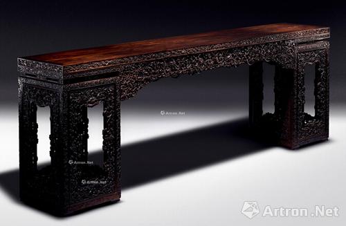 《清乾隆 御制紫檀镂空西番莲云蝠纹边架几案》2.99亿日币(RMB 1614.4万元)成交