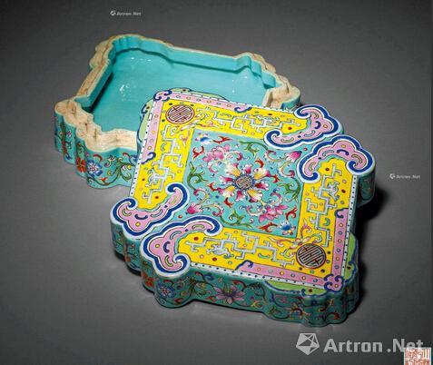 《清乾隆 绿地粉彩洋莲枝吉庆如意万寿纹方胜式盖盒》1.3亿日币(约RMB 683万元)成交