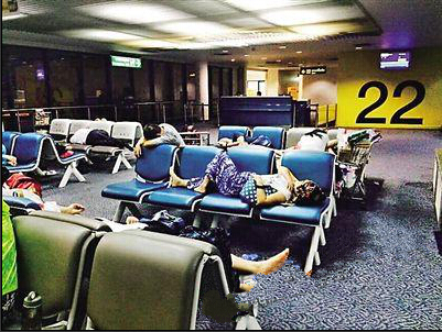 随后,约260名中国旅行团游客发生分歧,一部分愿意到酒店休息等登机,一部分则要留下来讨说法,要机场方面答应三个条件,否则不到酒店也不登机。三个条件大致是:一要机场方面公开道歉;二要乘波音747回家;三要赔偿1000元人民币。