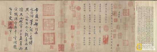 乾隆时将此卷收入内府,倍加珍赏,民国时流散出宫,张伯驹从北京琉璃厂购得,1956年无偿捐赠给国家,重回故宫收藏。