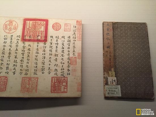 与武英殿展区“典藏篇”相呼应的是,延禧宫设《石渠宝笈》“编纂篇”,整合以往研究成果,通过文物展现清内府书画来源,《石渠宝笈》的编纂人员、编纂体例、版本与钤印以及收藏地点,使观众更深入全面地了解和研究《石渠宝笈》及其著录的书画精品。(撰文:竹子)