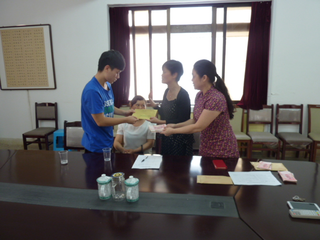 9月1日,在民建遵义市委机关会议室,家住遵义市红花岗区中华路苟家井的小凯,满怀感谢之情从民建遵义市委副主委陈俊英手中接过4000元助学金。不日,他将与弟弟一起踏上求学之路,去完成他们的求学梦想……除了他们,还有父亲病故母亲脑溢血至残的小茗,靠爷爷奶奶帮助生活的小安,也各自领到2000元助学金。