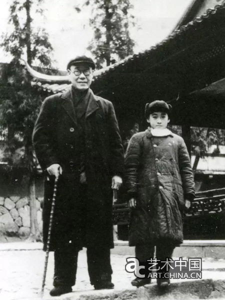 潘天寿与潘公凯,1961年摄于杭州灵隐
