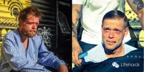 在纽约,有位名叫 Mark Bustos的帅哥发型师,他每周日在闲下来的时候都会走上街头,为流浪汉们免费剪头发。一开始其实并不顺利,他要花很长时间跟他们沟通,不过他没有放弃,仍坚持自己的这种善举。而经过他的改造,那些原本颓废、邋遢的流浪汉们如同重获新生,被遮掩的面庞也在此刻重新焕发光彩。
