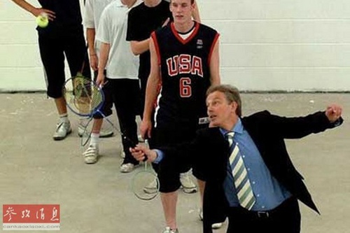 2007年5月24日,时任英国首相布莱尔打羽毛球。(图片来源:英国《伯明翰邮报》)