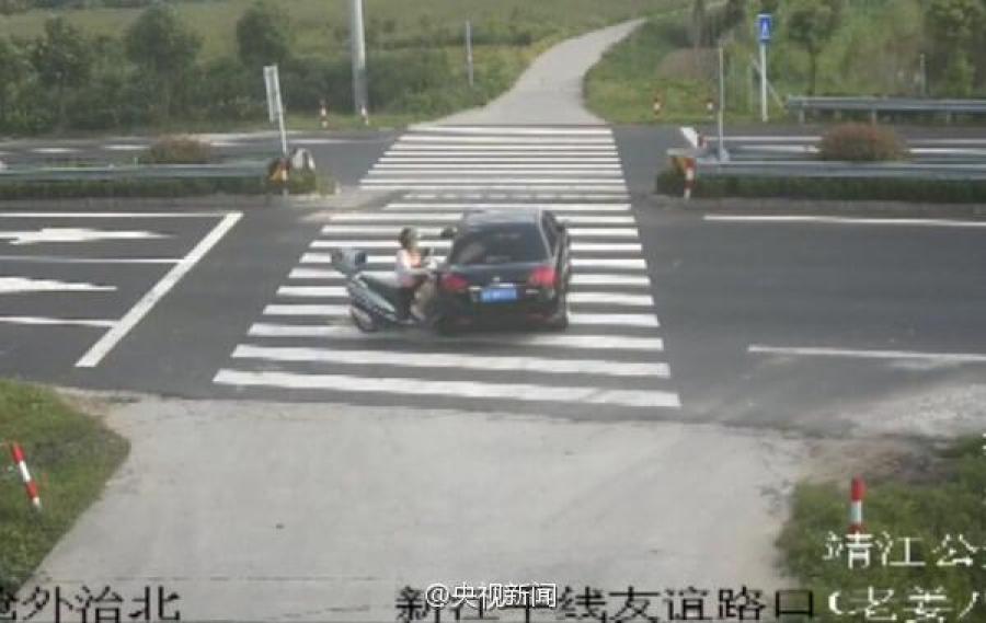 据央视报道,2015年9月17日,江苏泰州一名范姓女子骑着摩托车,一头撞上旁边驶来的一辆轿车,腾空而起,摔在地上。民警在调看监控录像时,发现范女士骑摩托时不时低头看手机,才导致了这次的撞上汽车的事故。