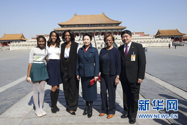 2014年3月20日,美国“第一夫人”米歇尔·奥巴马携76岁的母亲玛丽安·罗宾逊和正休春假的两个女儿玛利亚、萨莎如约而至,应邀抵京。米歇尔此访是美国总统夫人首次应中国国家主席夫人邀请访华,是中美两国第一家庭友好交往的创新,也是两国元首交流的有力补充,是中美关系中一抹嫣红的亮丽。