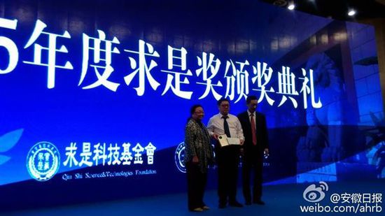 原标题:83岁教授使用砒霜治疗白血病 获颁"求是奖"