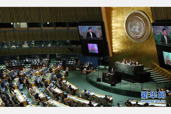 9月26日,国家主席习近平在纽约联合国总部出席联合国发展峰会并发表题为《谋共同永续发展 做合作共赢伙伴》的重要讲话。 新华社记者刘卫兵 摄