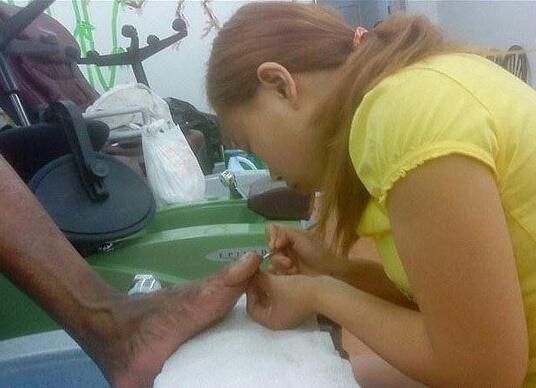 凤姐被曝在美国修脚照片。2012年6月,凤姐曾在微博称自己“也就只有给老外修修脚的工作能做”