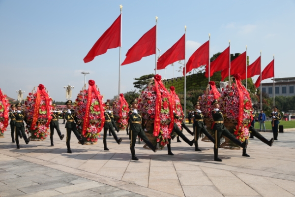 9月30日,烈士纪念日向人民英雄敬献花篮仪式在北京天安门广场隆重举行。新华社记者 黄敬文 摄