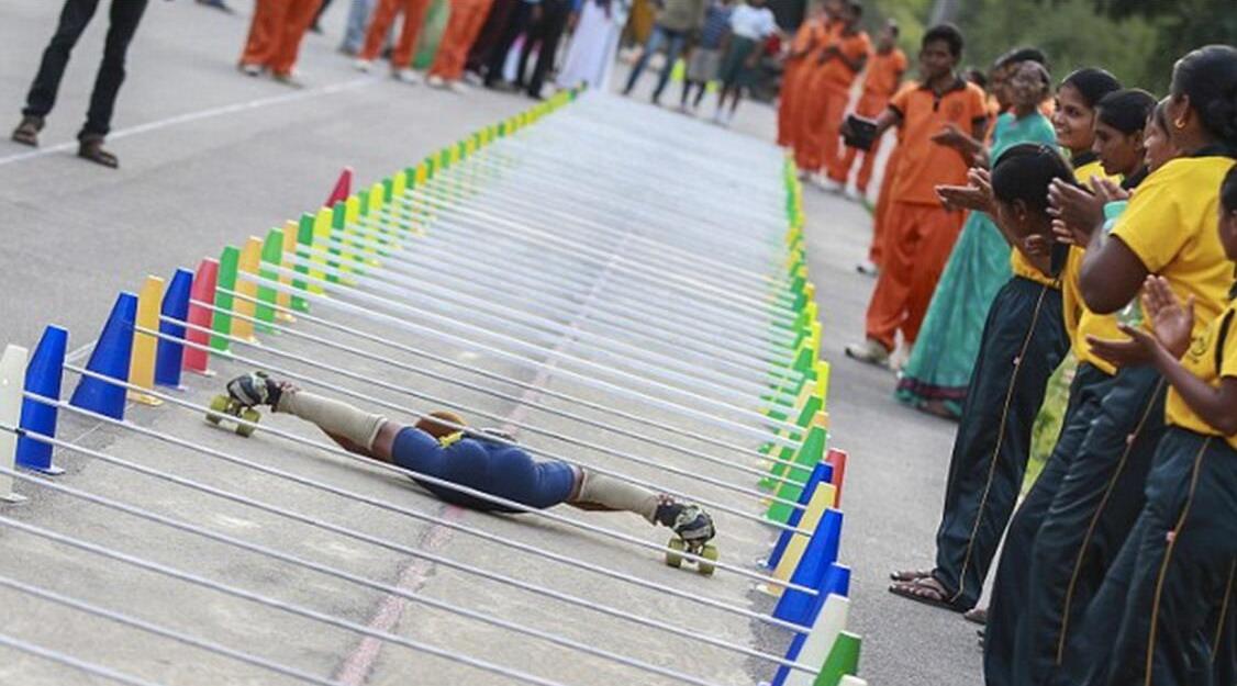 来自印度提如帕提的帕拉萨德滑过53辆汽车的滑行距离长达100米,而他仅用了22.59秒时间。