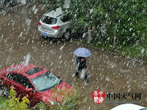 10月1日,内蒙古呼伦贝尔牙克石康乐小区,市民冒雪出行。(余昌军摄)