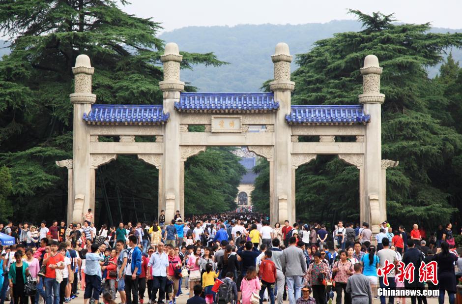 10月1日,江苏省南京市,当日是“十一”黄金周的第一天,很多游客来到南京中山陵参观游览,中山陵景区迎来客流高峰。中新社发 姚俊  摄