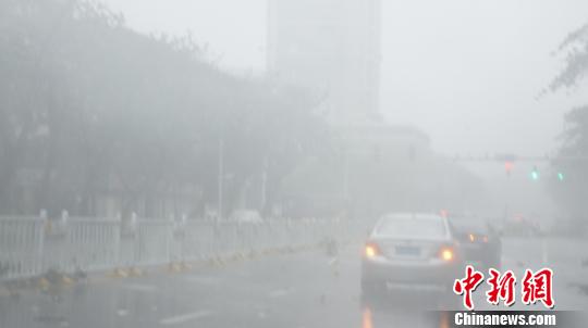 车在狂风呼呼中艰难前行 梁盛 摄