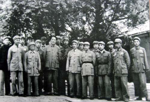 资料图:毛泽东主席和便衣保卫队队员合影。