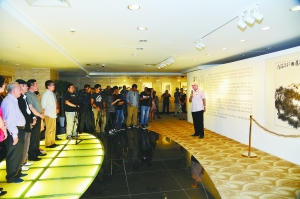 李燕(右二)与著名画家徐东鹏(左二)、齐慧娟(右一)观展
