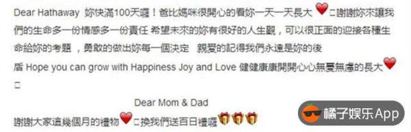 昆凌在微博中写道:“爸比妈咪很开心的看你一天一天长大!谢谢你来让我们的生命多一份情感多一份责任,希望未来的你有很好的人生观,可以很正面的迎接各种生命给你的考题 ,勇敢的做出你每一个决定,亲爱的记得我们永远是你的后盾。”